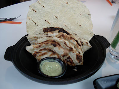 The restaurant itself is on the mezzanine level of the hotel, and is a huge room with crisp white tablecloths and shiny glasses and silverware (and bright orange chopsticks). The service was polite but a little slow, but always befitting a fine dining establishment.